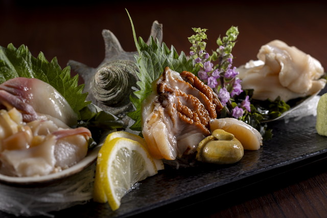 - 《なきざかな 渋谷》の〈本日の活貝三種盛〉